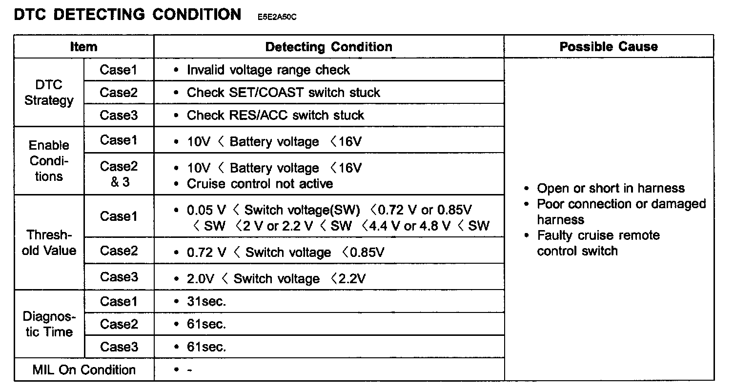 ECM sets DTC P0564 if the ECM detects signal from switch exceeds threshold value.