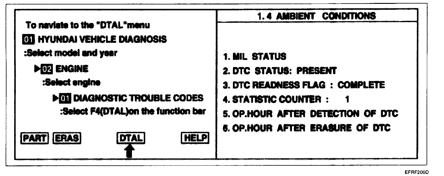 2. Press F4(DTAL) to select DTC information from the DTCs menu