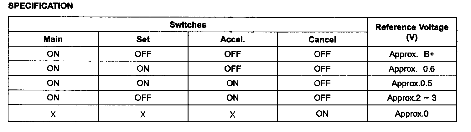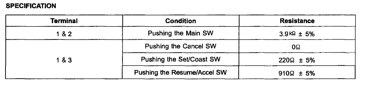 2. Measure cruise remocon switch resistance as follows.(Component side)