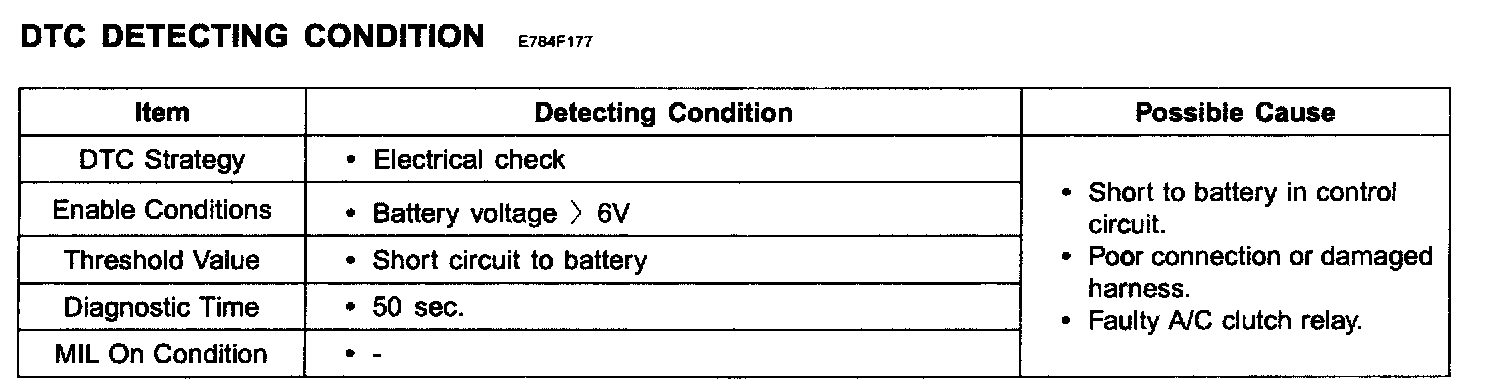 ECM sets DTC P0647 if the ECM detects signal voltage lower than the possible range of a properly operating A/C clutch relay.