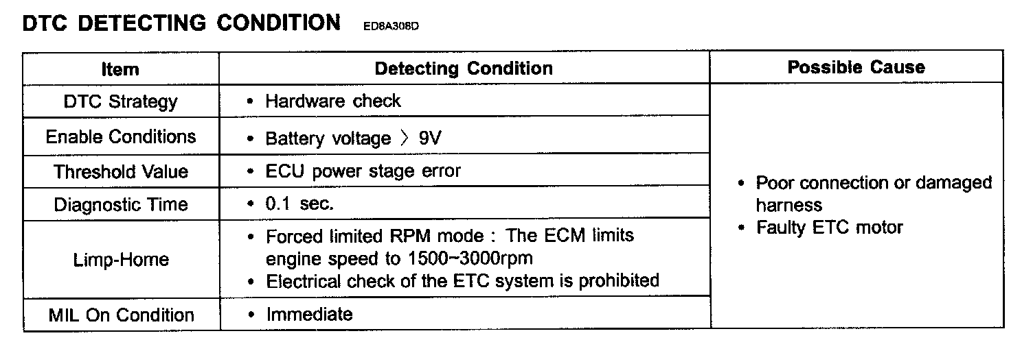 The Electronic Throttle Control(ETC) system is made of the components throttle body, Throttle Position Sensor(TPS)1 & 2 and Accelerator Position Sensor(APS) 1 & 2. The throttle body contains the actuator, the throttle plate and the throttle position sensor (potentiometer), which are integrated in one housing. The actuator consists of a DC motor with a two-stage gear. The opening angle of the throttle valve is detected by the throttle position sensor which is mounted on the throttle body. And it provides feedback to the ECM to control the throttle motor in order to control the throttle valve opening angle properly in response to the driving condition.