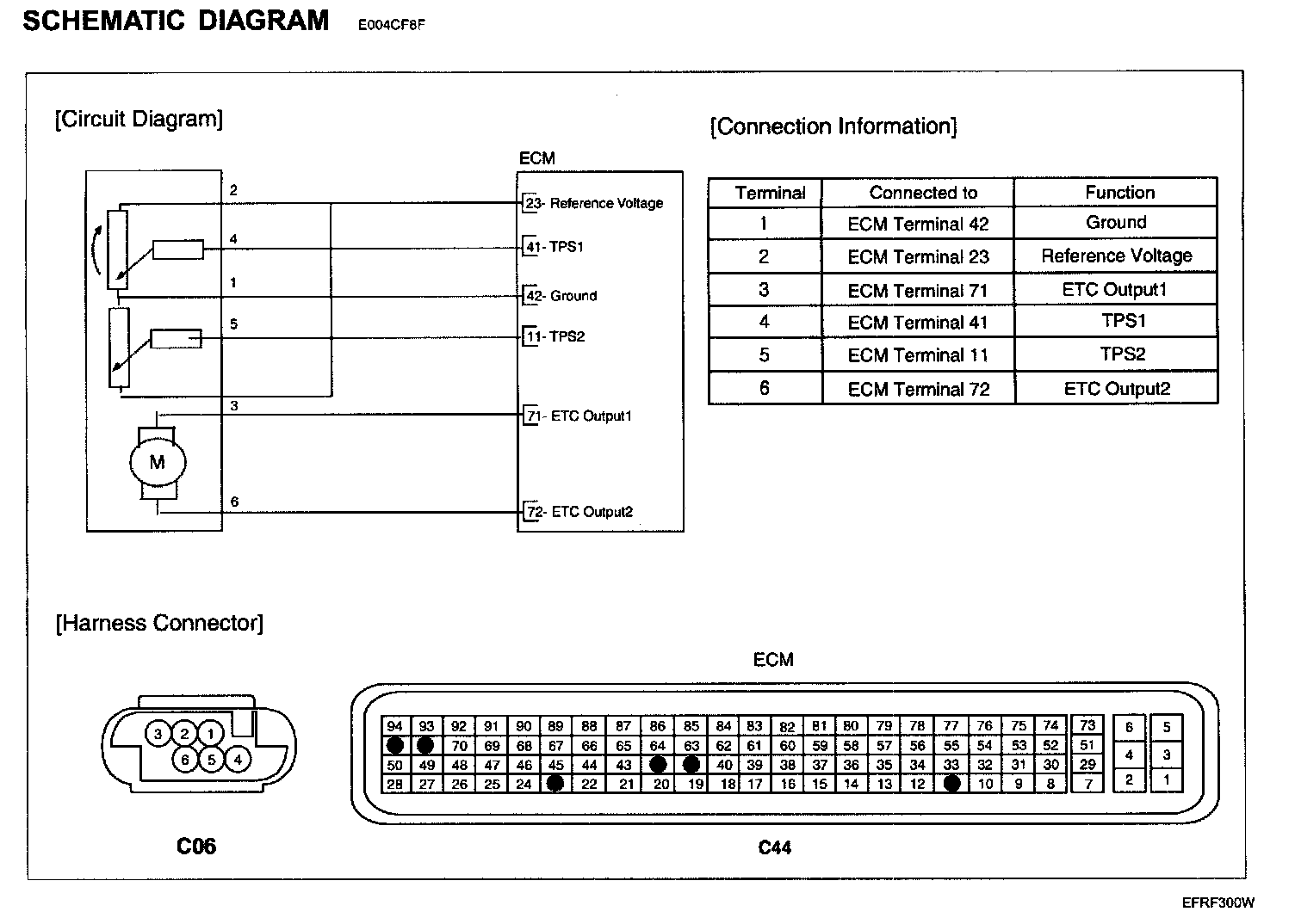 2. Measure resistance between terminals 6 of the ETC motor harness connector and 72 of the ECM harness connector