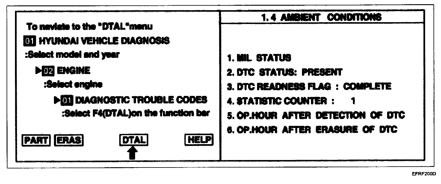 2. Press F4(DTAL) to select DTC information from the DTCs menu