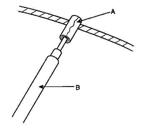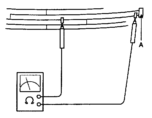 2. Touch one tester probe to the glass antenna terminal (A) hear, and move the other tester probe along the antenna wires to check that continuity exists.