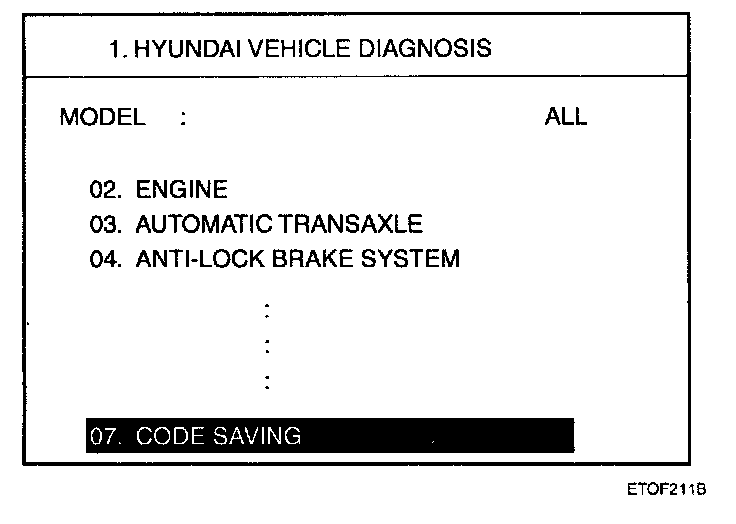3. After selecting "CODE SAVING" menu, push "ENTER" key, then the screen will be shown as below.