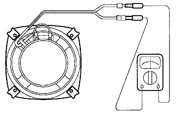 INSPECTION1. Check the speaker with an ohmmeter. If an ohmmeter indicates the correct impedance of the speaker when checking between the speaker (+) and speaker (-) of the same channel, the speaker is OK.