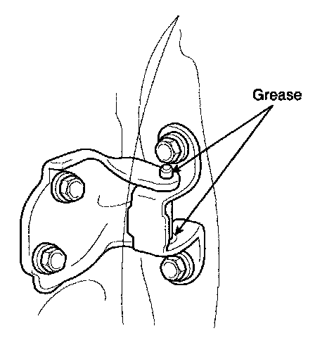 4. Grease the pivot portions of the hinges indicated by the arrows.