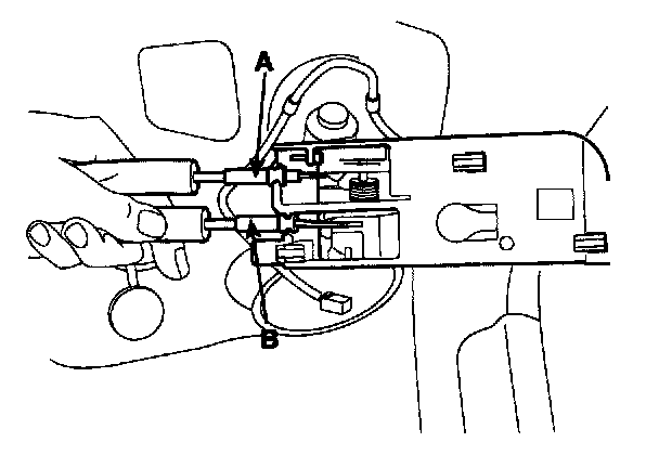 2. After disconnecting the connector (A), remove the power window motor (B).