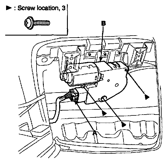 2. Disconnect the motor connector (A), remove the screws and then remove the motor (B).