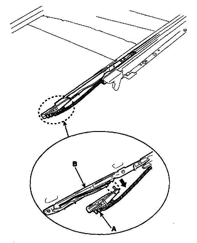 2. Remove a guide assembly (A) after lowering a guide thoroughly by pushing a slide (B) to rear.