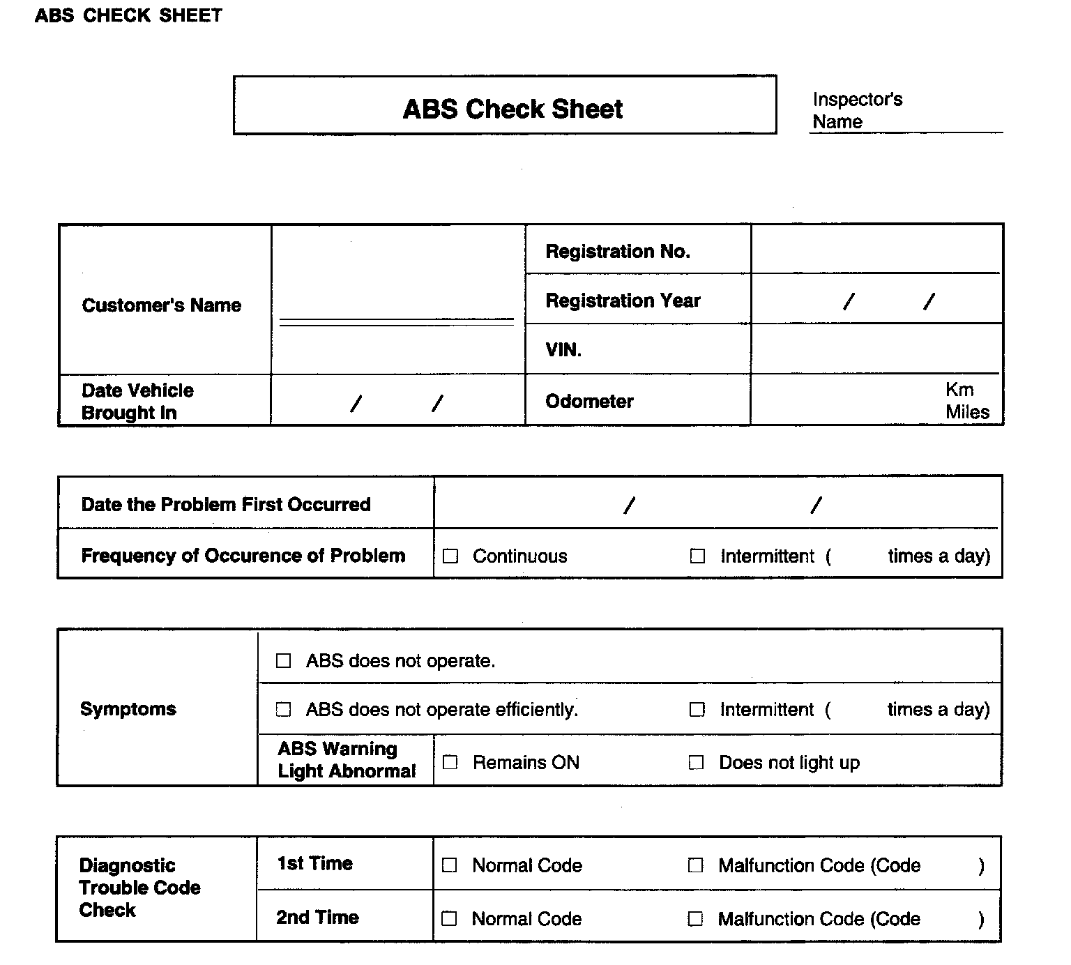 ABS Check Sheet