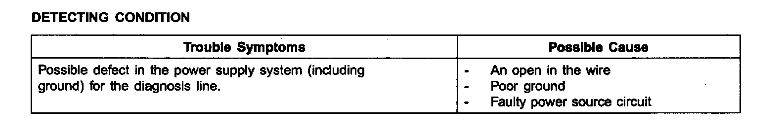 CHECK THE POWER SUPPLY CIRCUIT FOR THE DIAGNOSIS