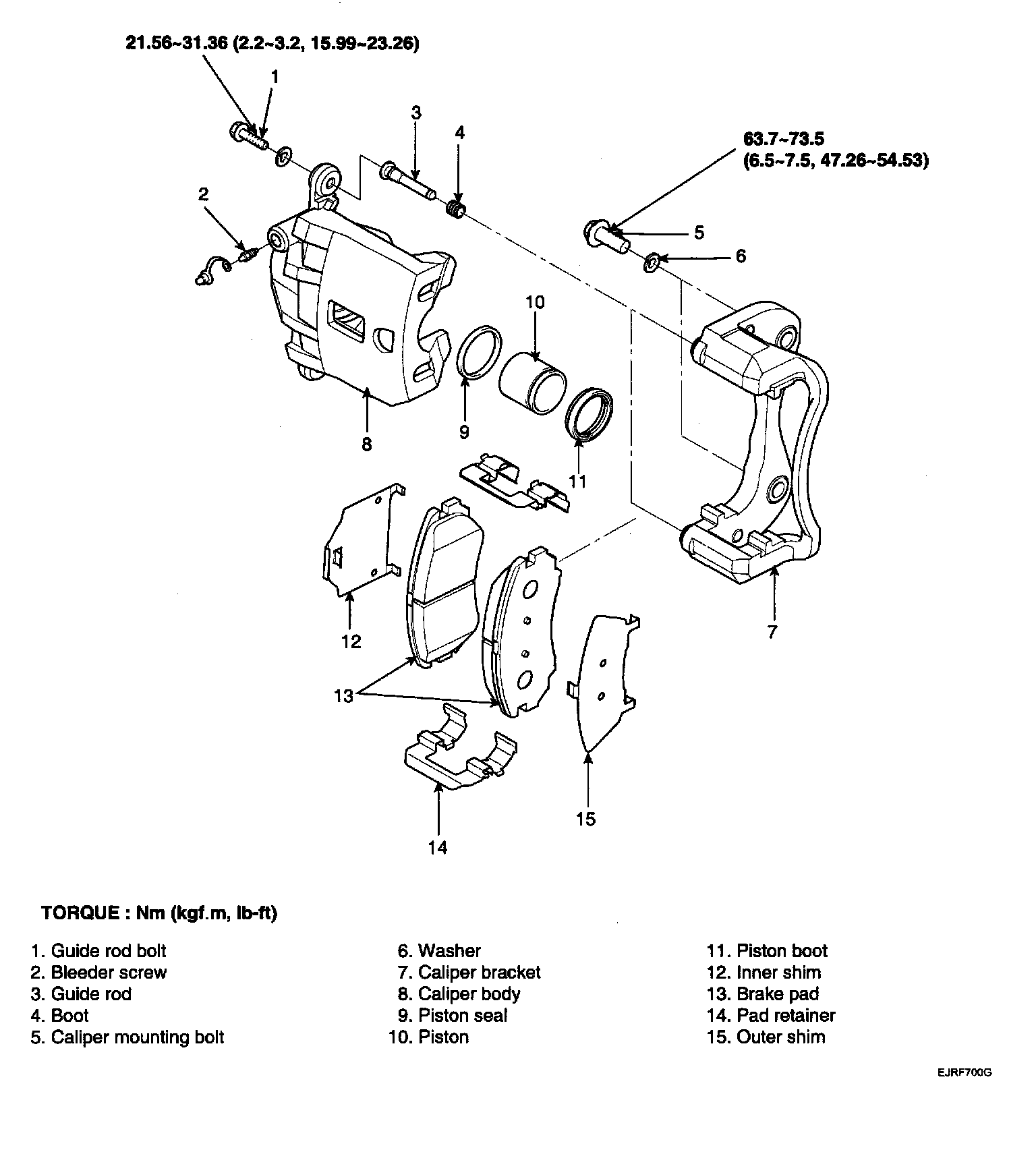 NOTE: Engagement of the brake may require a greater pedal stroke immediately after the brake pads have been replaced as a set Several applications of the brake will restore the normal pedal stroke. Be sum to do this before driving the vehicle.