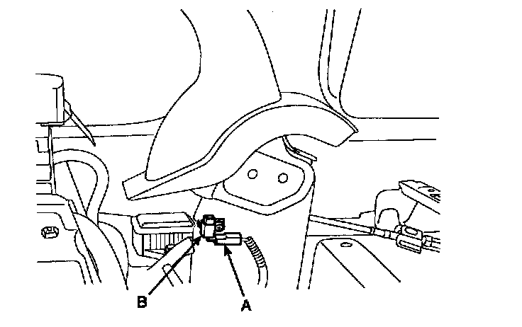 1. Remove the floor console and the connector (B) from the switch (A).