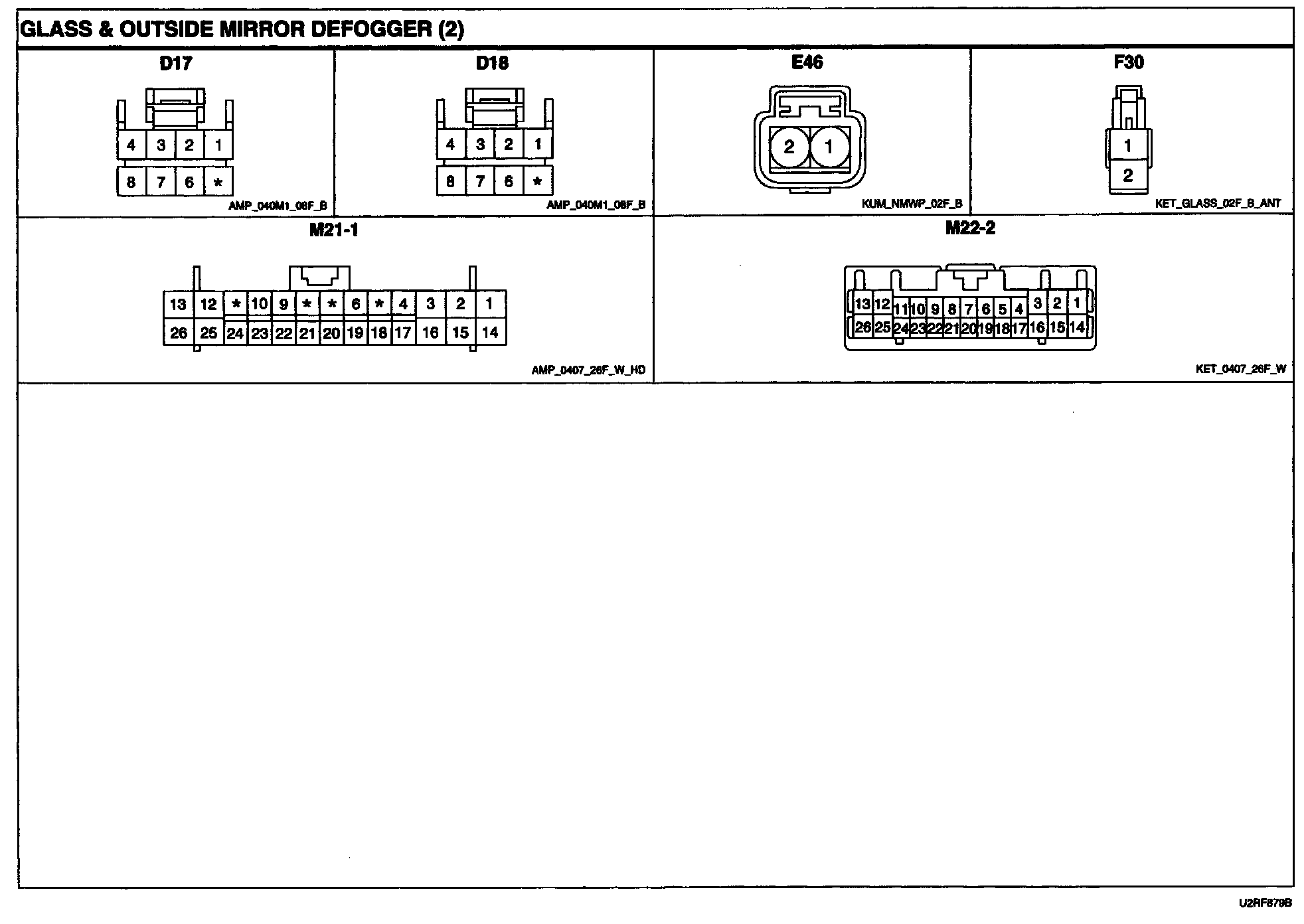 Glass & Outside Mirror Defogger Connector Pin Outs: