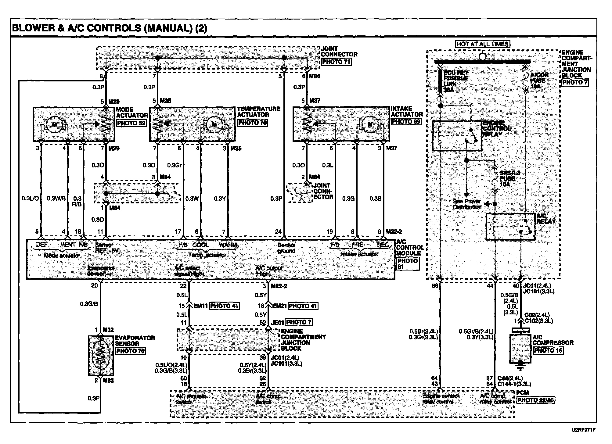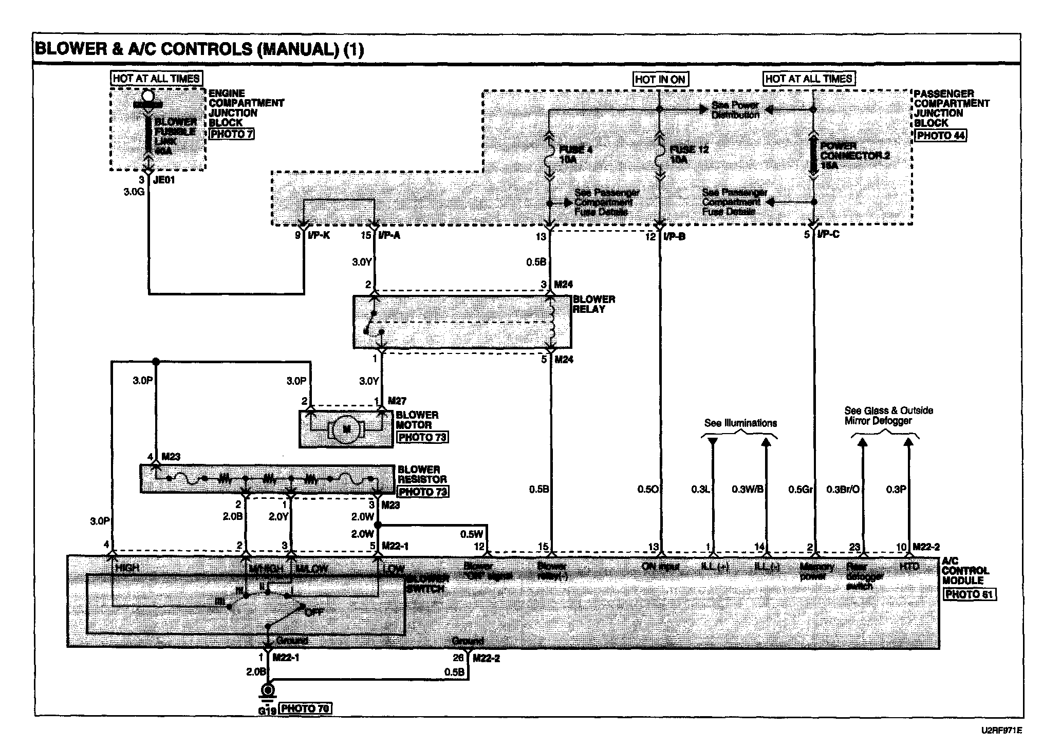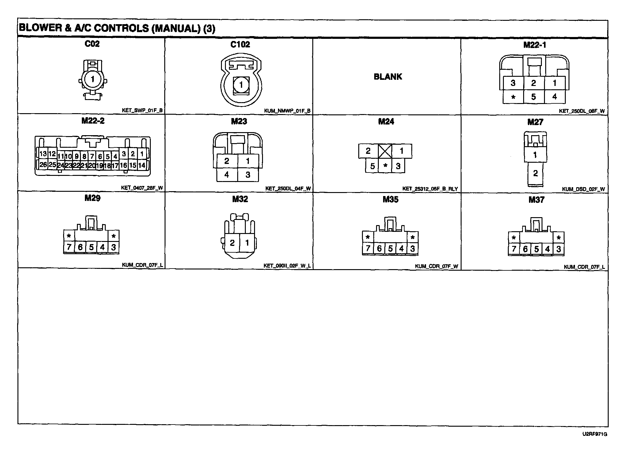 Blower & A/c Controls (Manual) Connector Pin Outs: