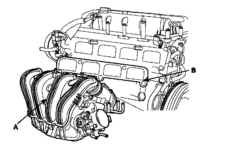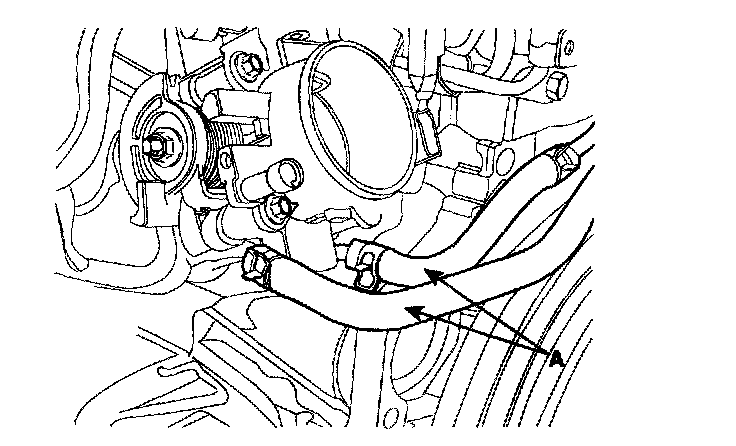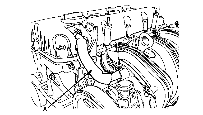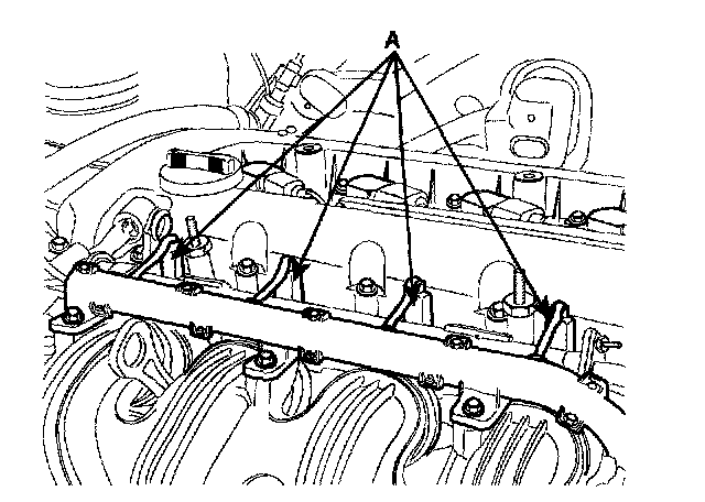 5. Remove the delivery pipe (A), brake vacuum hose (B), and PCSV hose (C).