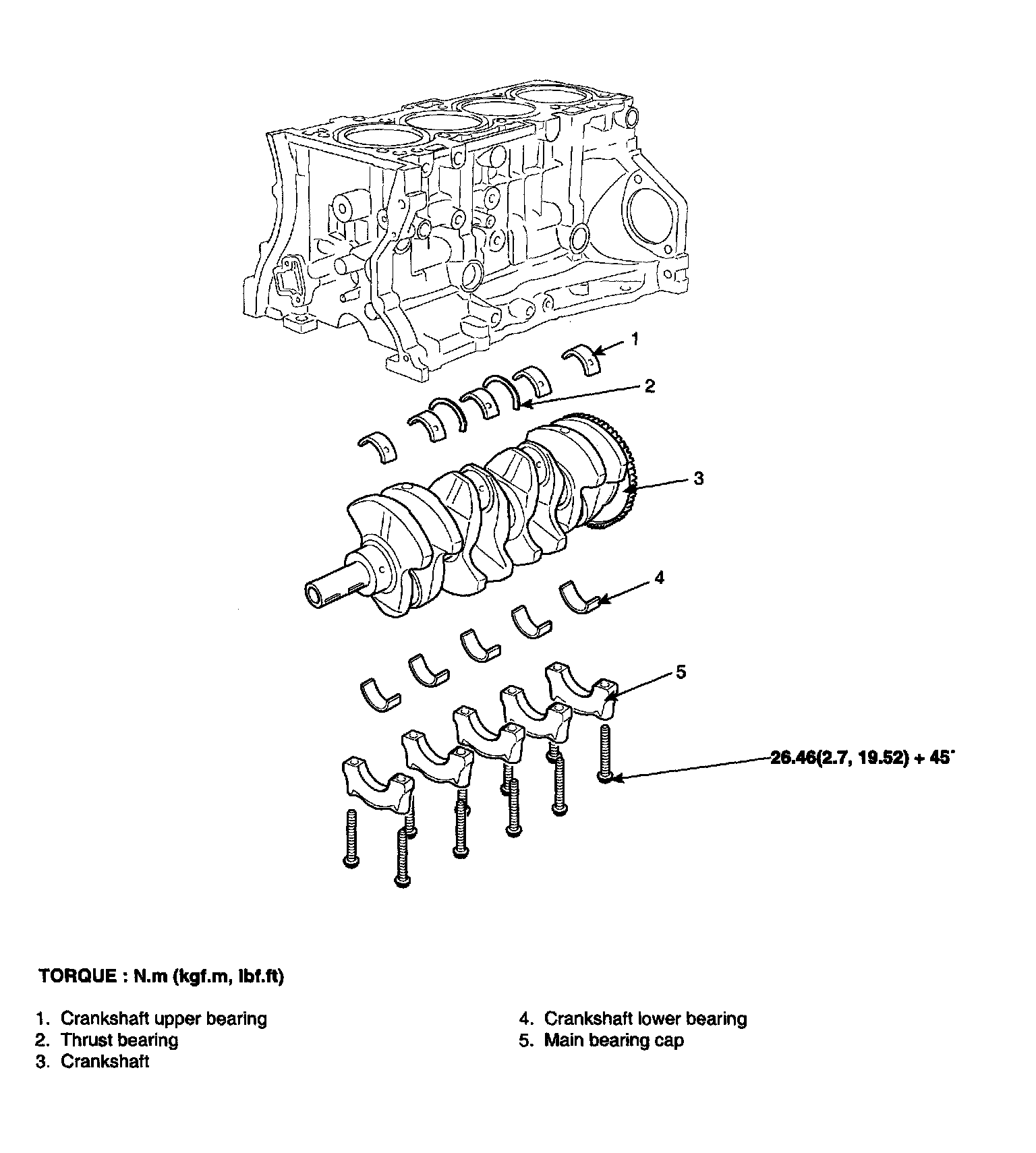 NOTE: Arrange the main bearings and thrust bearings in the correct order.