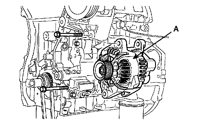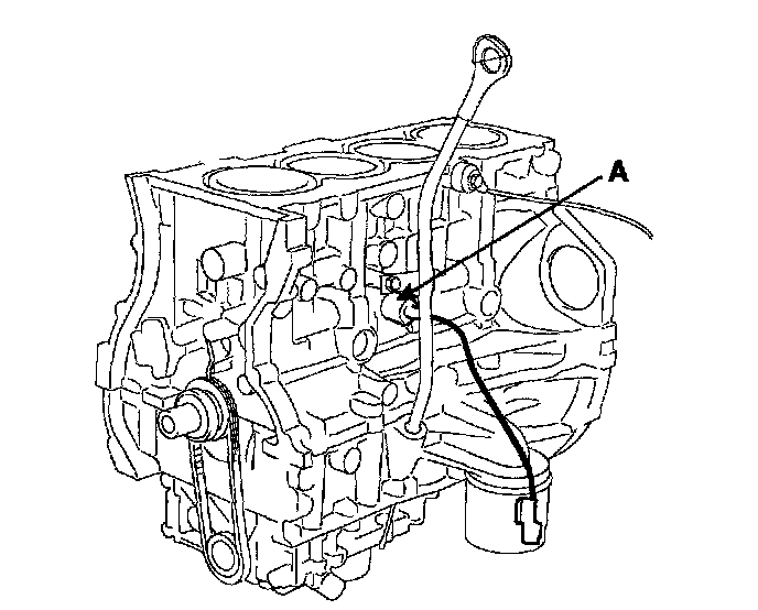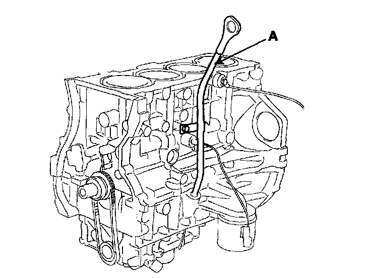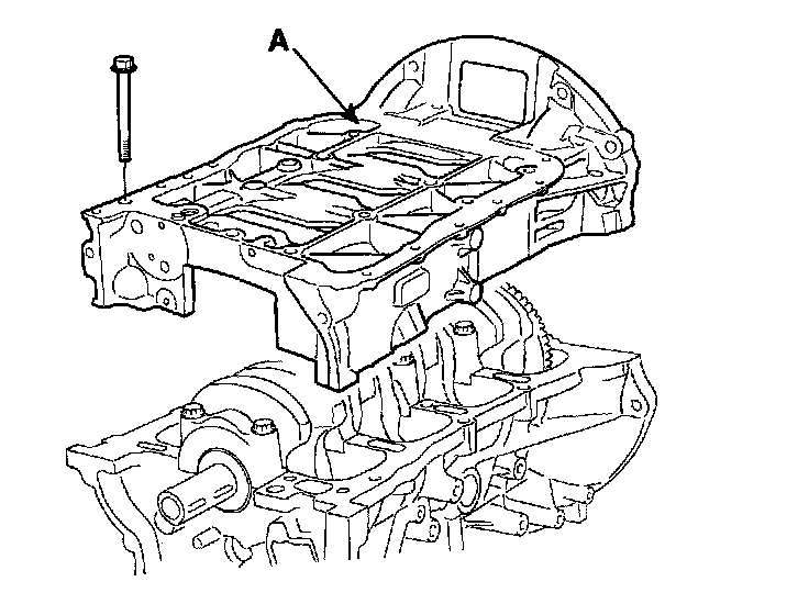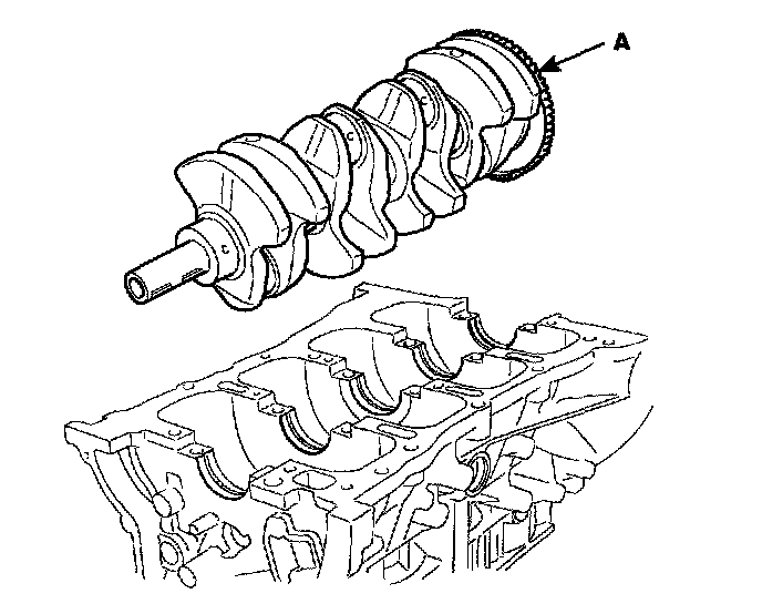 22. Lift the crankshaft (A) out of the engine, being careful not to damage journals.
