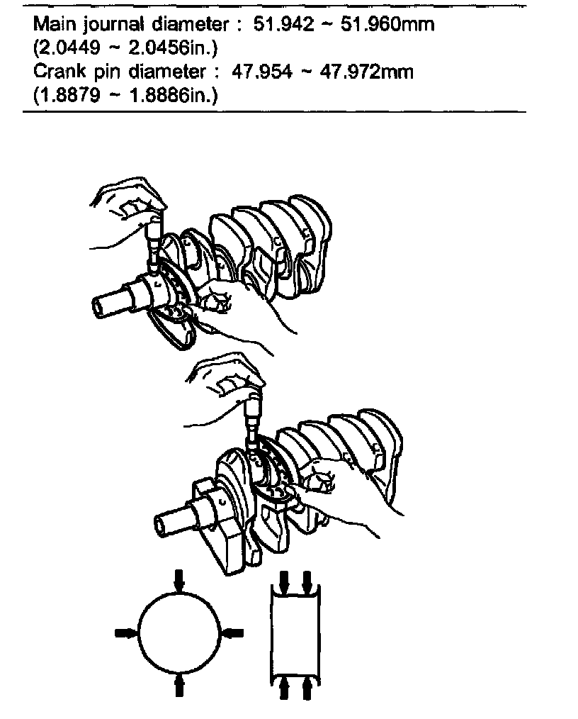 Main journal diameter: 51.942 - 51.960 mm (2.0449 - 2.0456 inch)