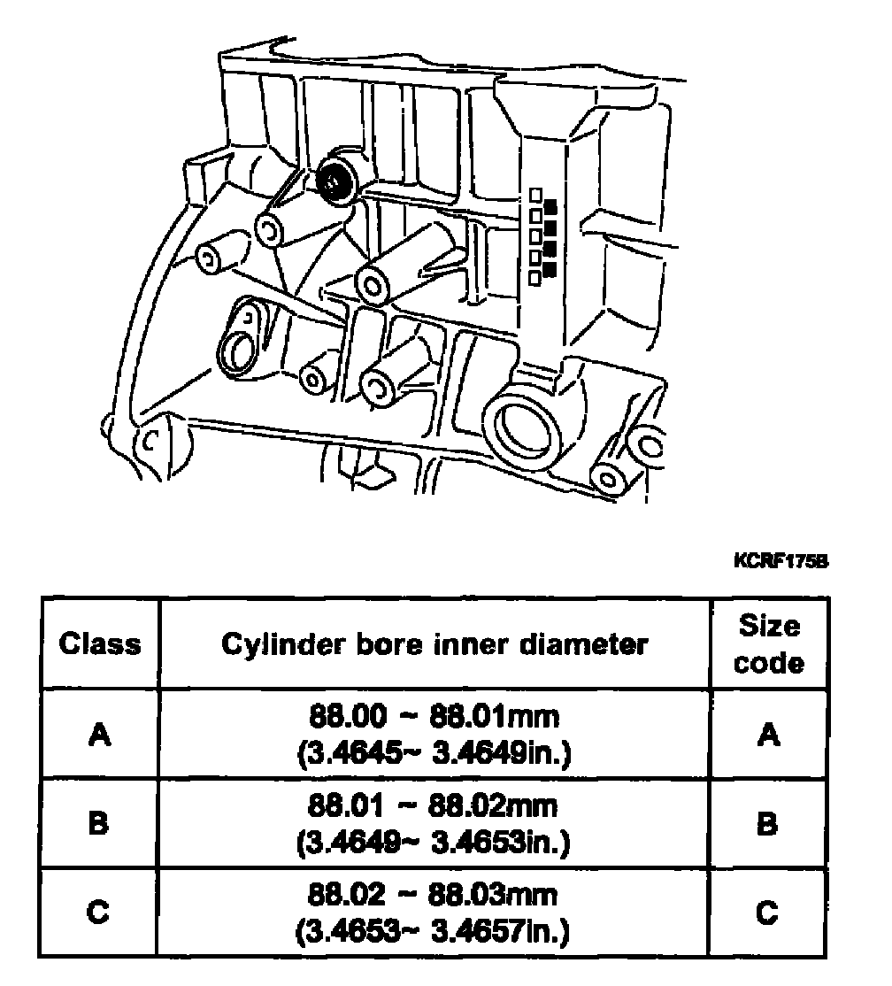 6. Check the cylinder bore size code on the cylinder block.