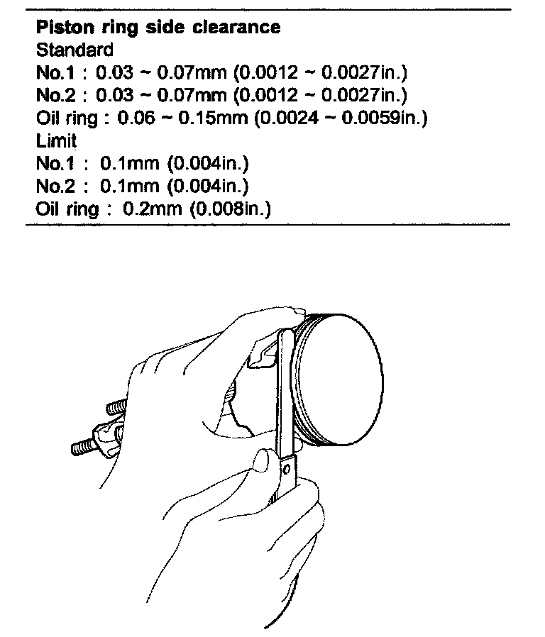 4. Inspect the piston ring side clearance.