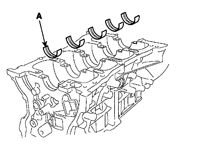 1) Align the bearing claw with the claw groove of the cylinder block, push in the 5 upper bearings (A).