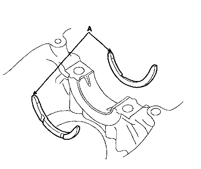 Install the 2 thrust bearings (A) under the No. 3 journal position of the cylinder block with the oil grooves facing outward.