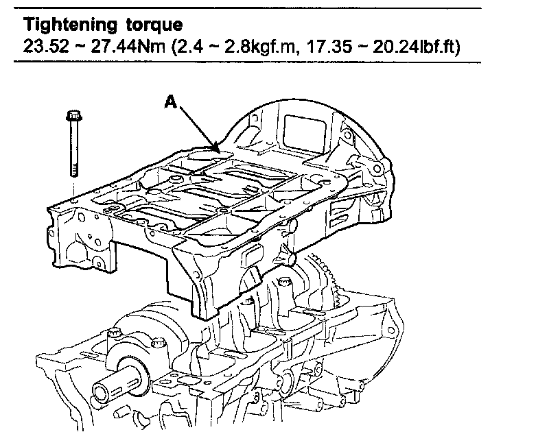 Tightening torque 23.52 - 27.44 Nm (2.4 - 2.8 kgf.m, 17.35 - 20.24 ft. lbs.)