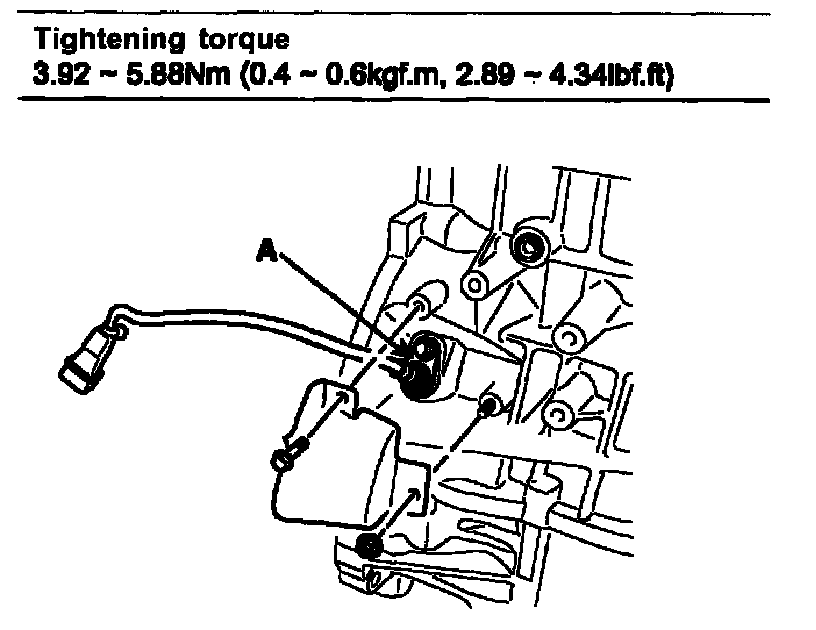 Tightening torque 3.92 - 5.88 Nm (0.4 - 0.6 kgf.m, 2.89 - 4.34 ft. lbs.)