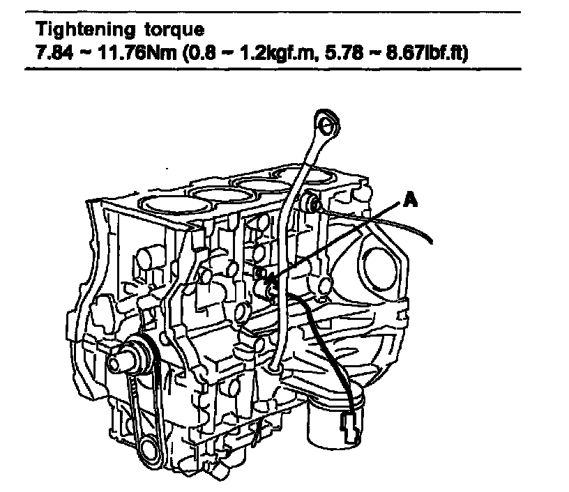 Tightening torque 7.84 - 11.76 Nm (0.8 - 1.2 kgf.m, 5.78 - 8.67 ft. lbs.)