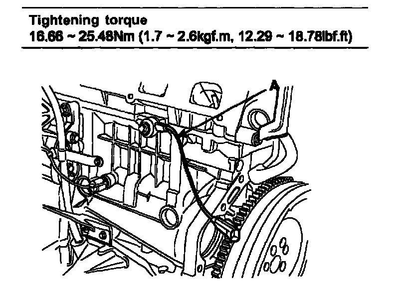 Tightening torque 16,66 - 25.48 Nm (1.7 - 2.6 kgf.m, 12.29 - 18.78 ft. lbs.)