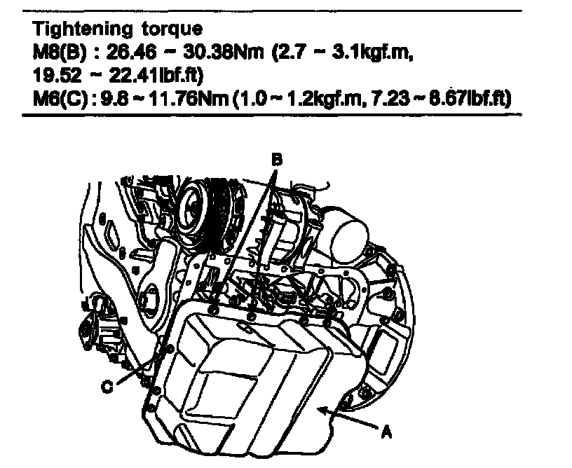 M8(B): 26.46 - 30.38 Nm (2.7 - 3.l kgf.m, 19.52 - 22.41 ft. lbs.)