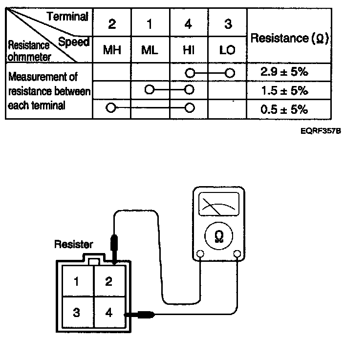 If measured resistance is not within specification, the blower resistor must be replaced. (After removing the resistor)