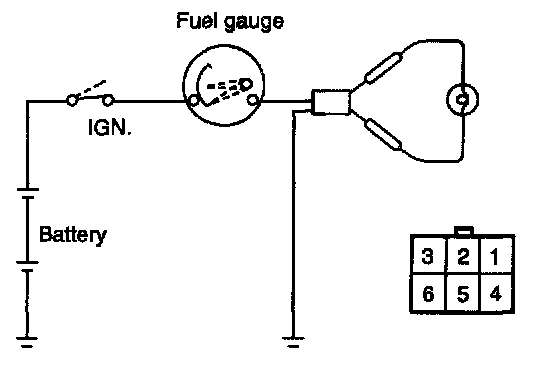 3. Turn the ignition switch to the ON, and then check that the bulb lights up and the fuel gauge needle moves to full.