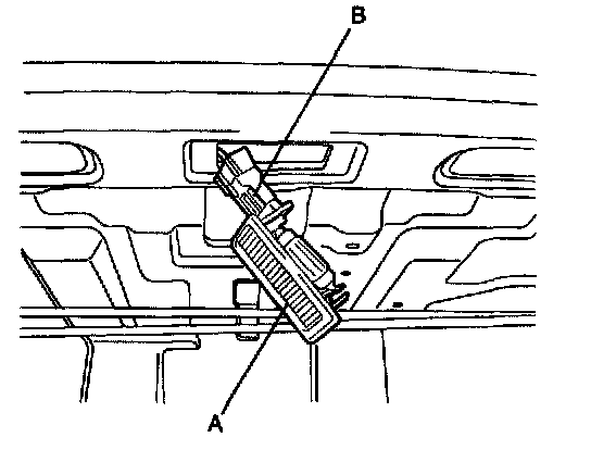 2. Open the trunk lid, then remove the trunk room lamp (A) with a flat-tip screwdriver and disconnect the 2P connector (B).