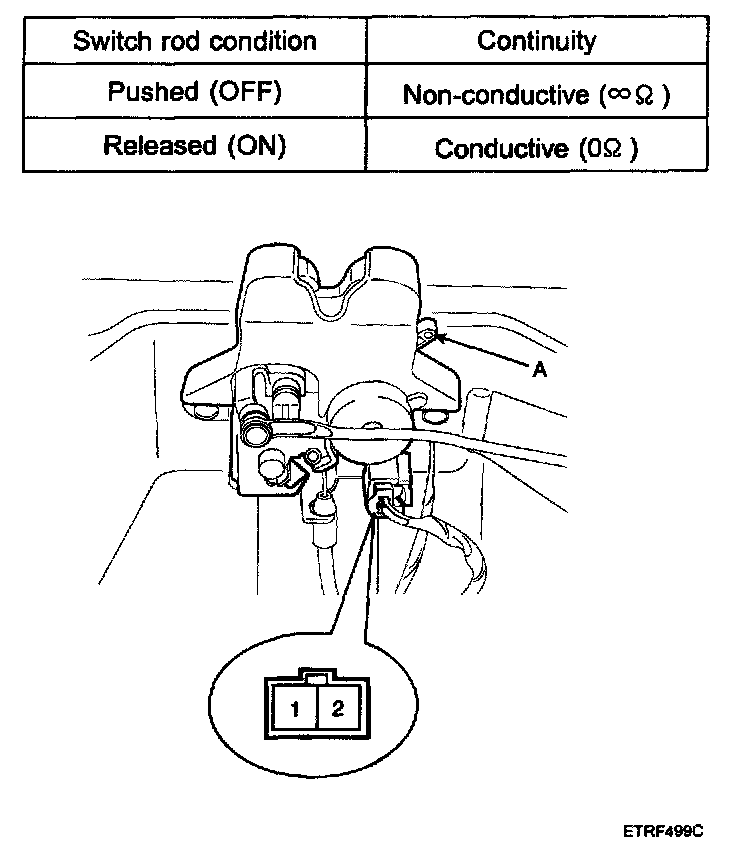 4. Check for continuity between the terminal No.1 and body while pushing the rod (A).