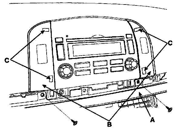 3. Remove the center facia panel (B) after loosening the screws.