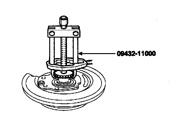 11. Using the special tool (09432-11000), remove the bearing inner race from the axle hub.
