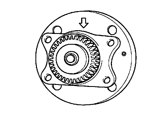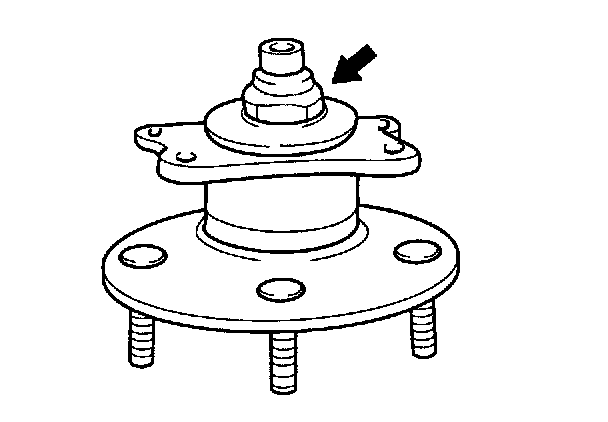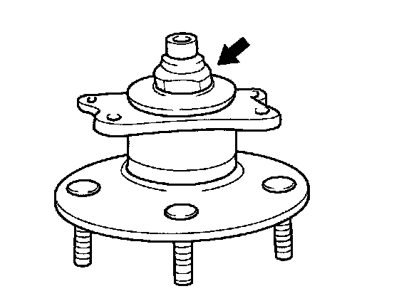 6. Fix the hub and bearing assembly to the brake backing plate so that the rounded area of the bearing outer race is placed facing upward.