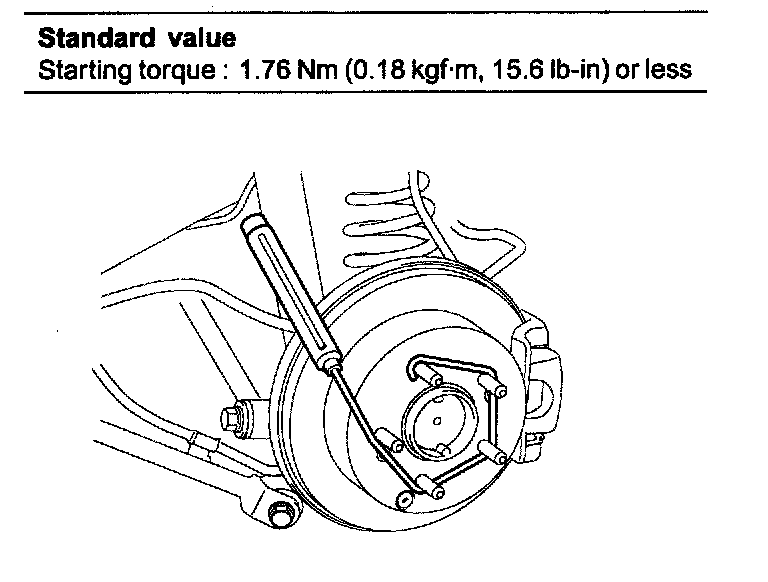 9. Using a spring balance, measure the wheel bearing starting torque.