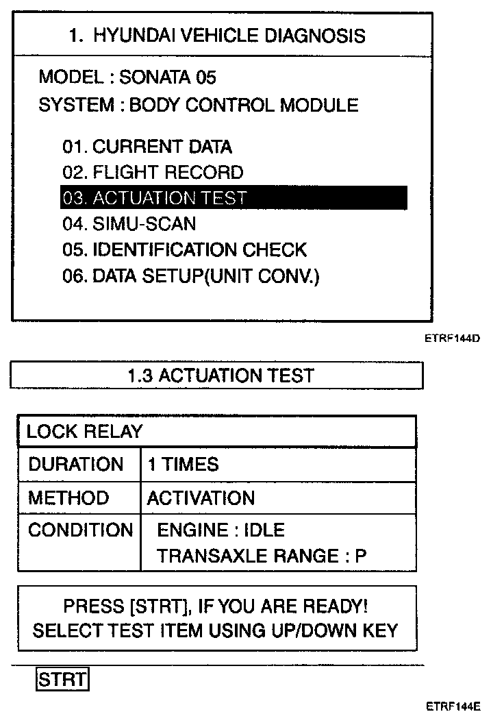 4. To perform compulsory operation on BCM input factors, select "03. ACTUATION TEST"