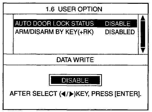 The BCM ofters 3 items user option mode for a user convenience (Auto door lock, door key burglar alarm, door lock state inform horn)