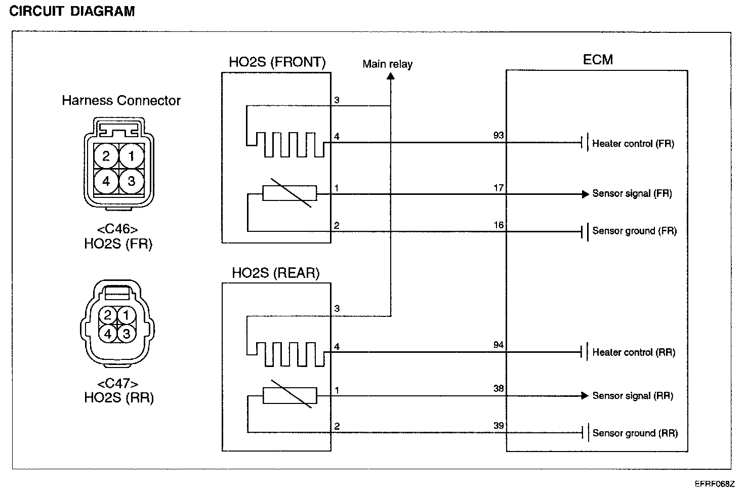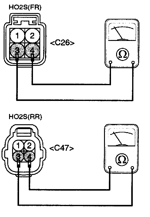 2. Measure resistance between the terminals 3 and 4 of front and rear HO2S connectors.