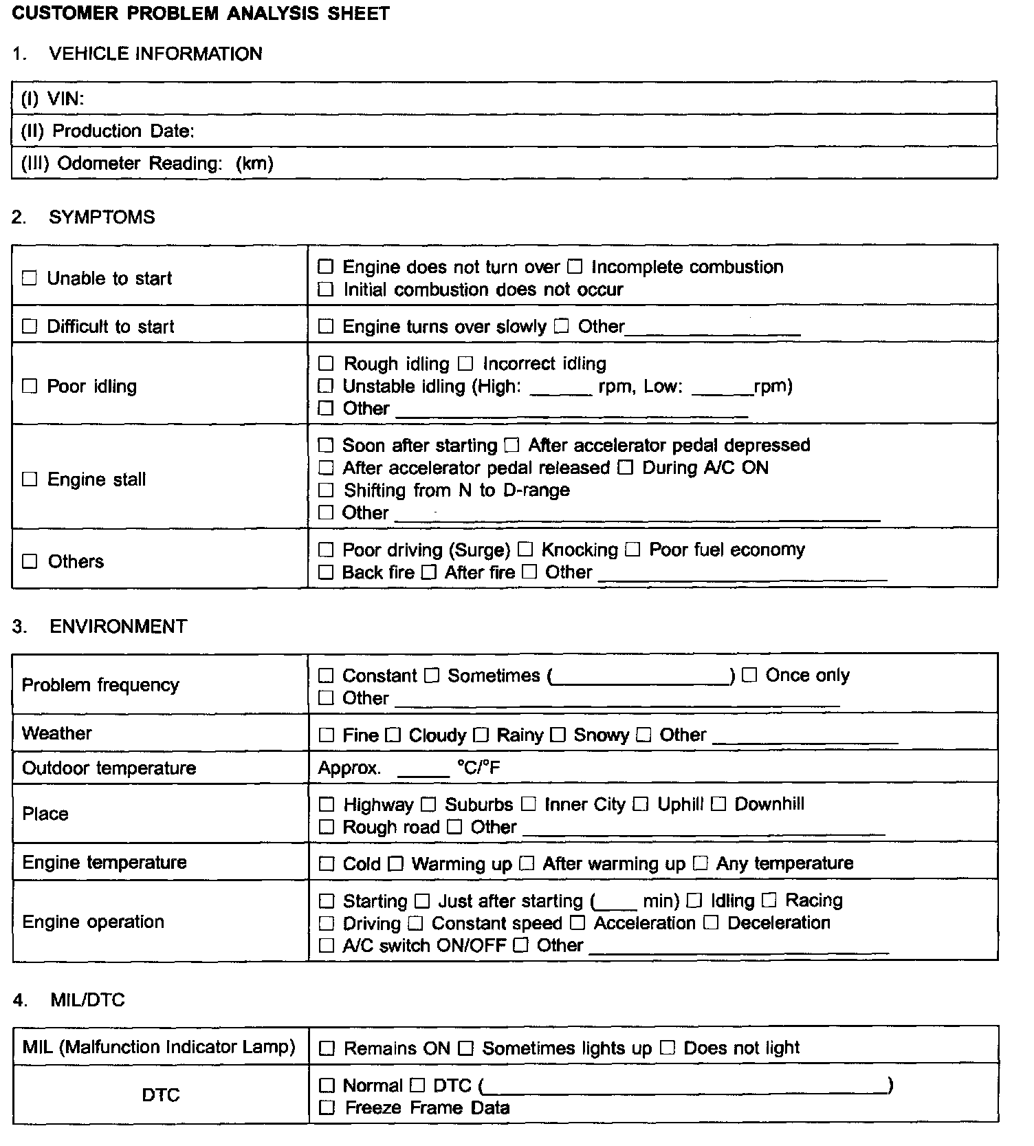 Customer Problem Analysis Sheet