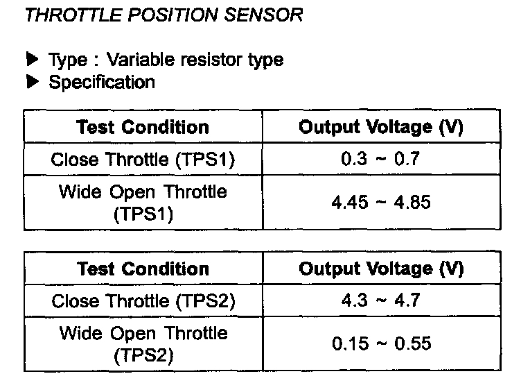 Throttle Position Sensor: Specifications