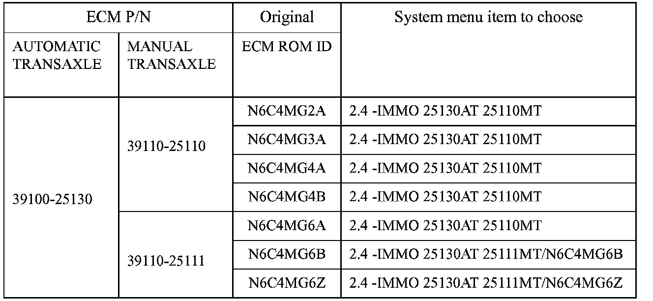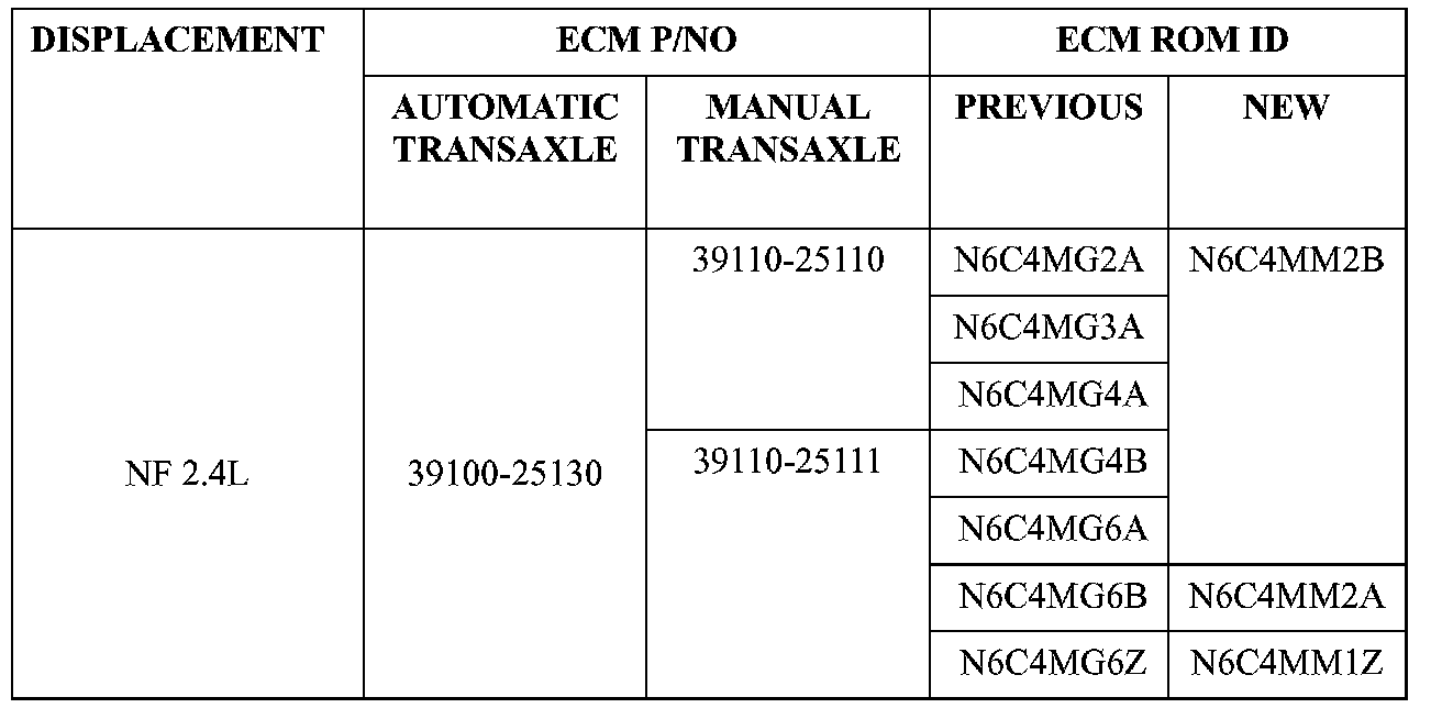 Model: SONATA(NF) 2.4L vehicles