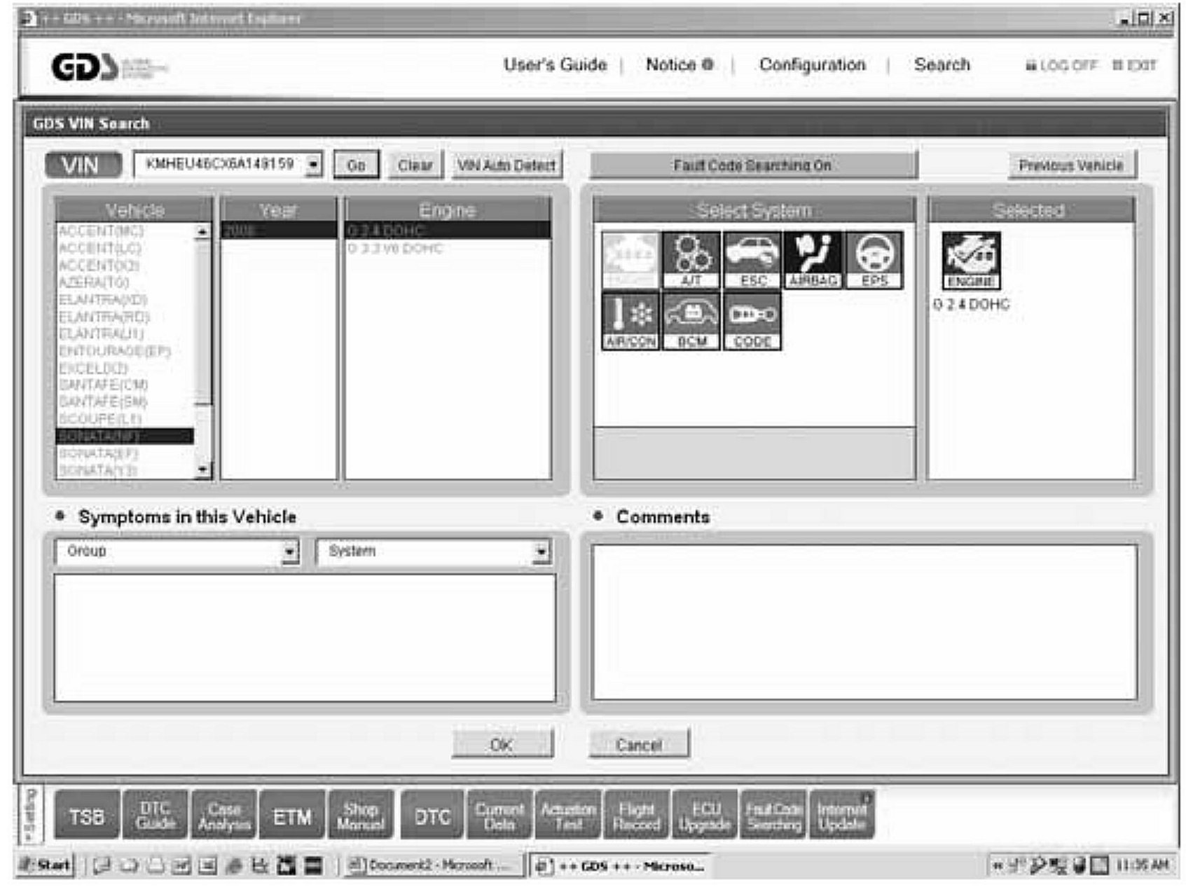 4. Press the VIN button at the top of the screen to launch the GDS VIN search screen.