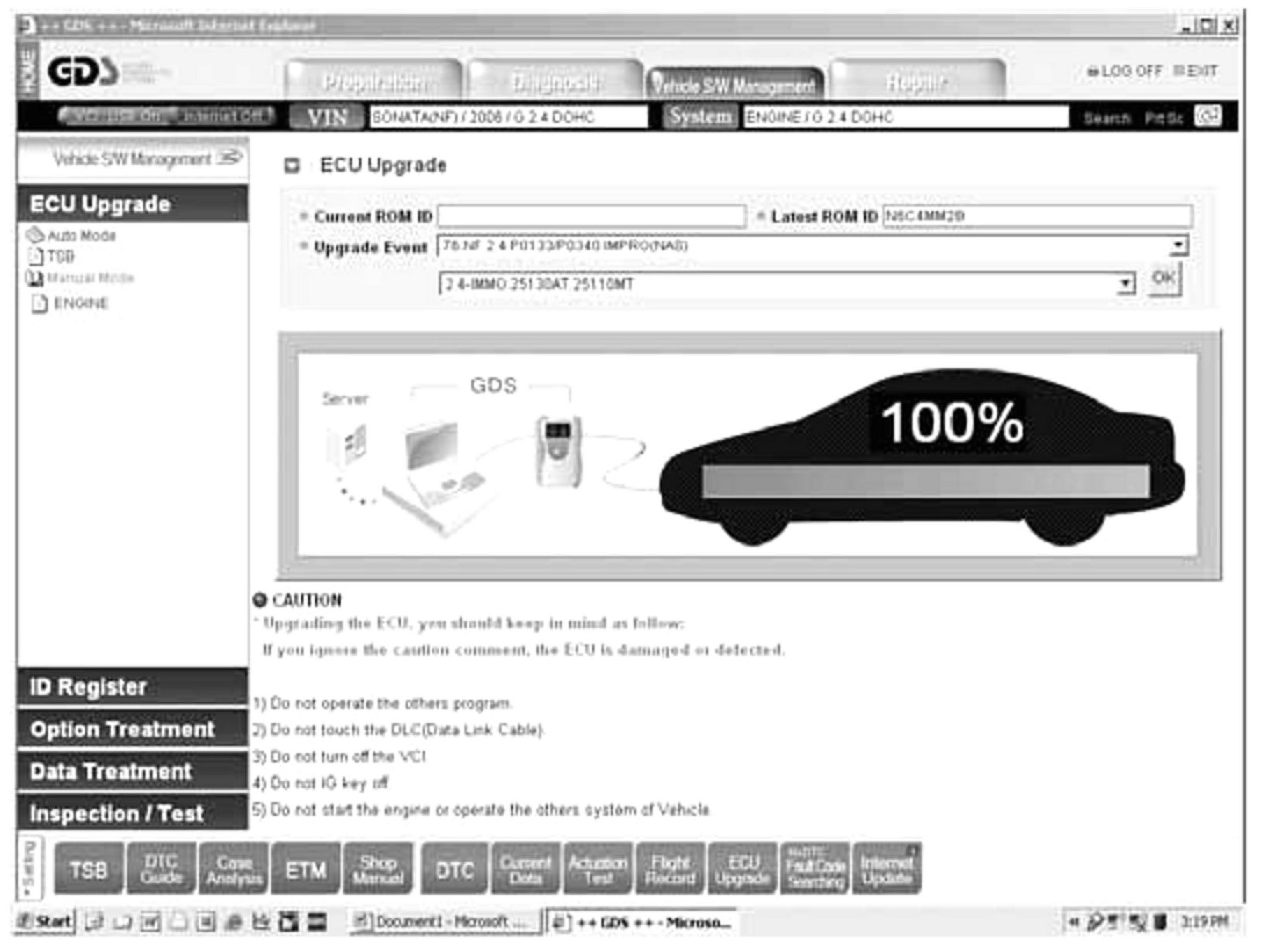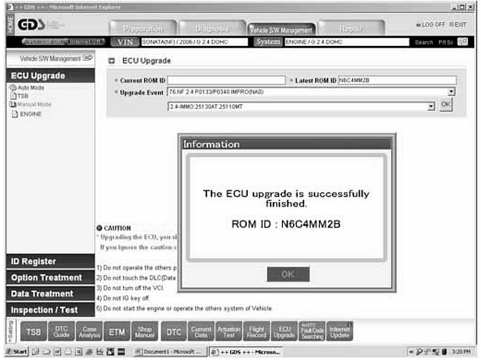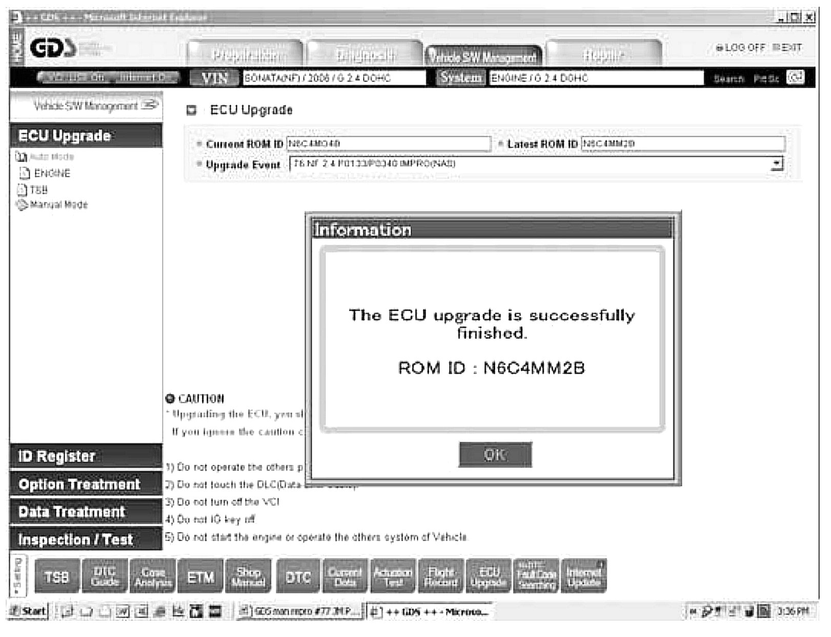 ECM REPROGRAMMING OF 2006 SONATA WITH MIL ILLUMINATION AND DTC P0133/P0340