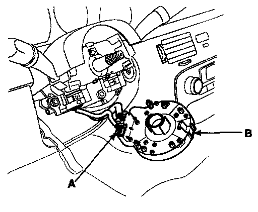 5. Remove clock spring connector(A), then remove clock spring(B).